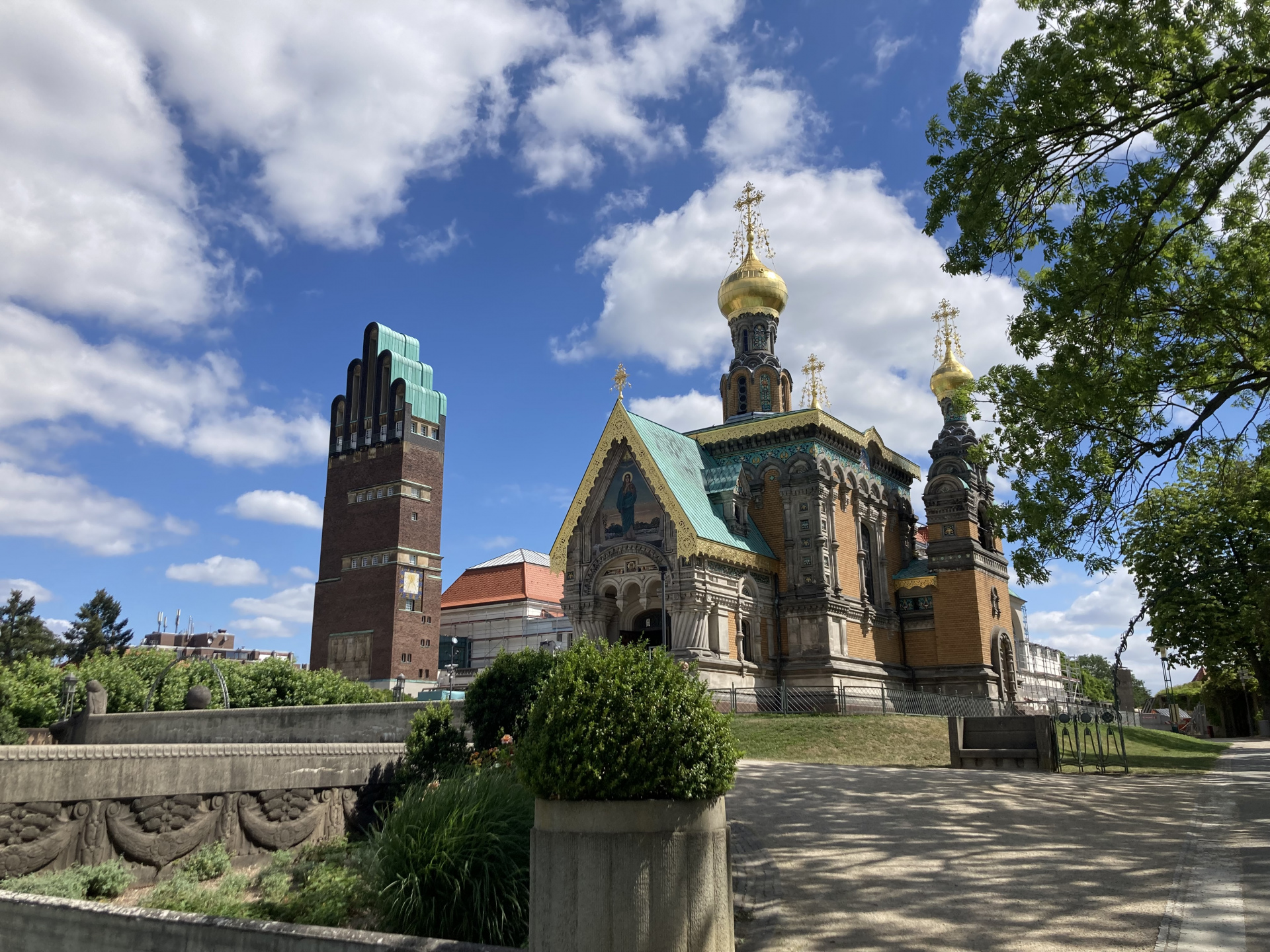 1907–08 wurde auf der höchsten Stelle der Mathildenhöhe, auf dem 1880 errichteten ehemaligen Wasserreservoir, das von Joseph Maria Olbrich geplante Ausstellungsgebäude errichtet. Es bildet zusammen mit dem ebenfalls für die „Hessische Landesausstellung für Freie und Angewandte Kunst“ erbauten Hochzeitsturm ein eindrucksvolles Ensemble, das das Stadtbild prägt.